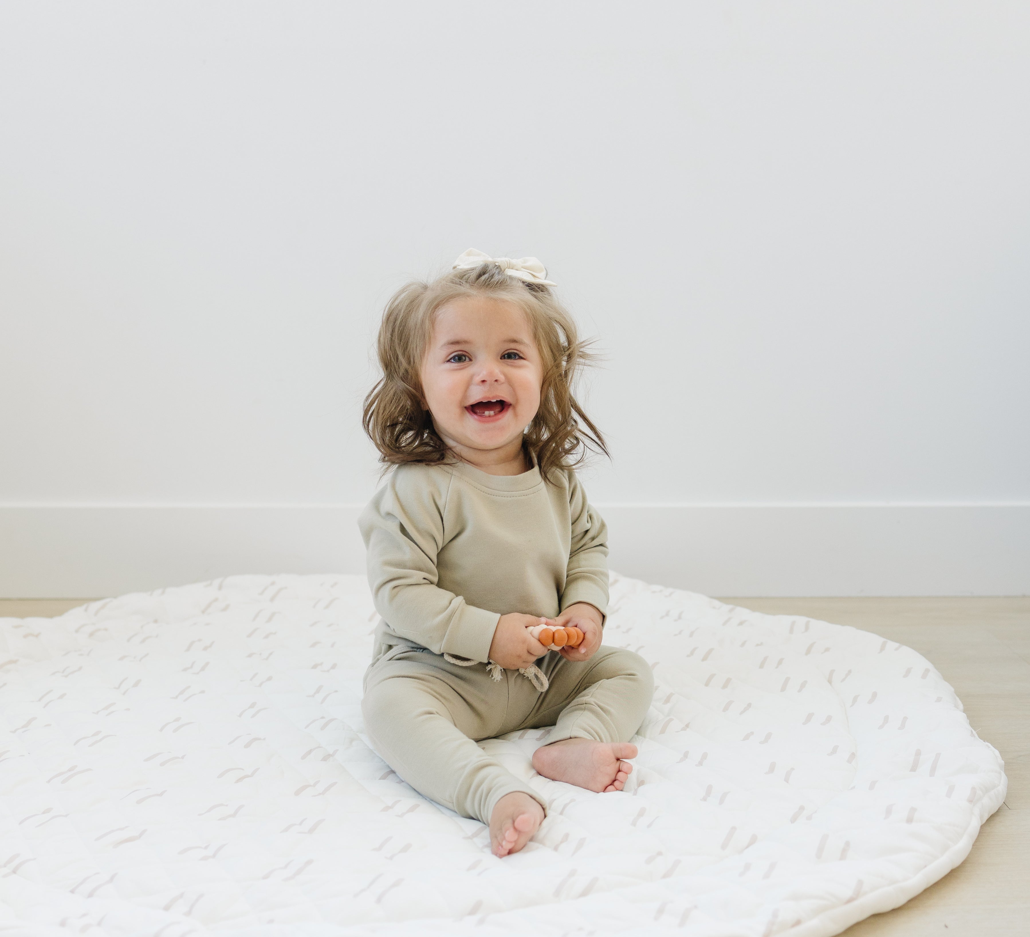 Um, when did this peanut become a toddler? Playful movement here leads to walking, climbing on the couch or even— hello!—going down stairs while holding your hand. All, unlocking more confidence in their bodies (not to mention the development of one gorgeous lumbar spine!)