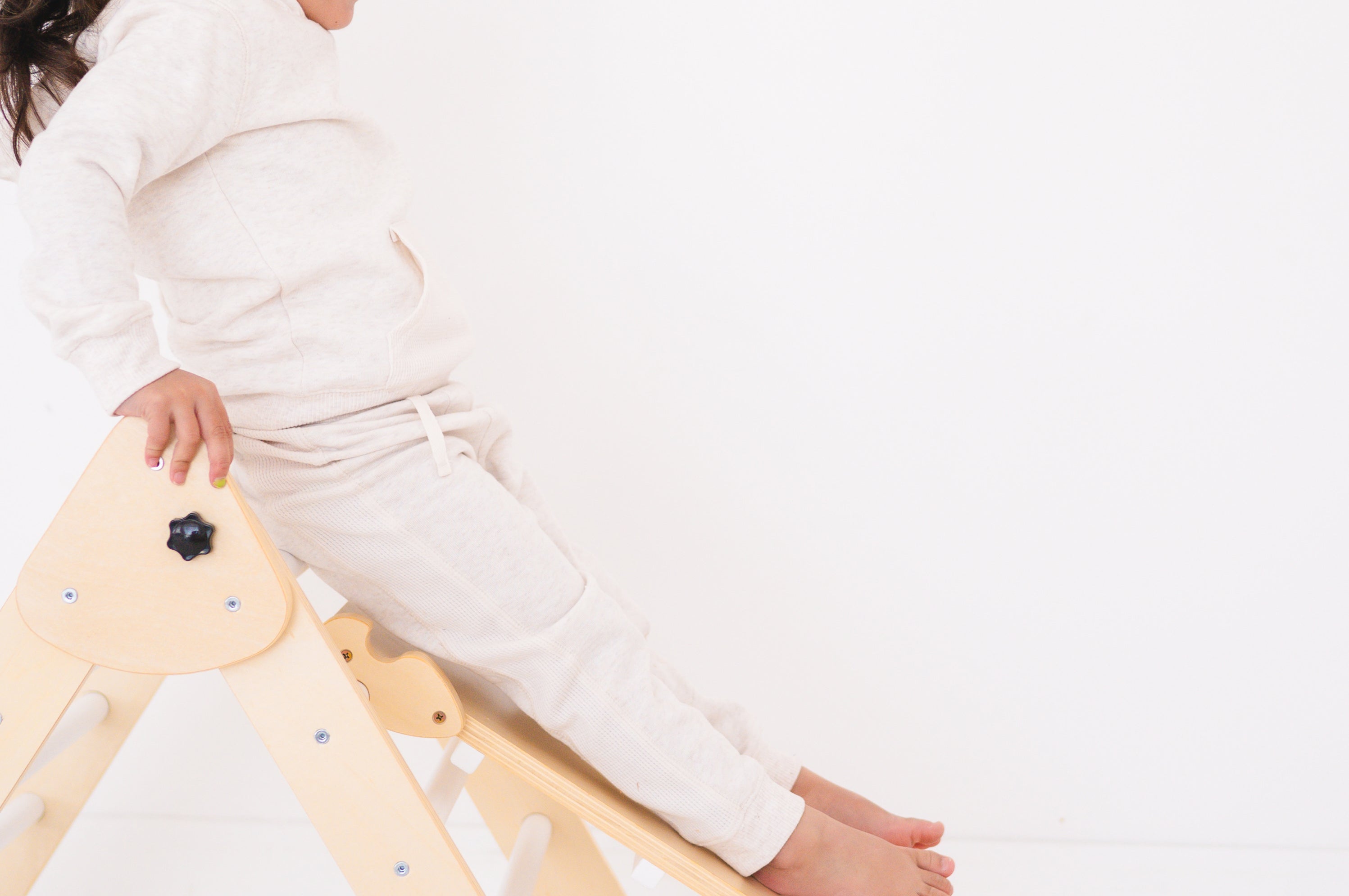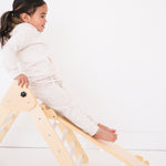 The foldable triangle climbing frame provides a practical solution for convenient storage, making it ideal for smaller spaces. Since there's no need to allocate a designated spot for this climbing toy, you can effortlessly move it around and create dedicated play spaces in any room you prefer. Enjoy the flexibility and mobility the pikler triangle and ramp bring to your little ones' playtime!