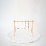 • 100% natural pine wood gym frame and 100% natural beech wood hanging toys, sanded to be silky smooth